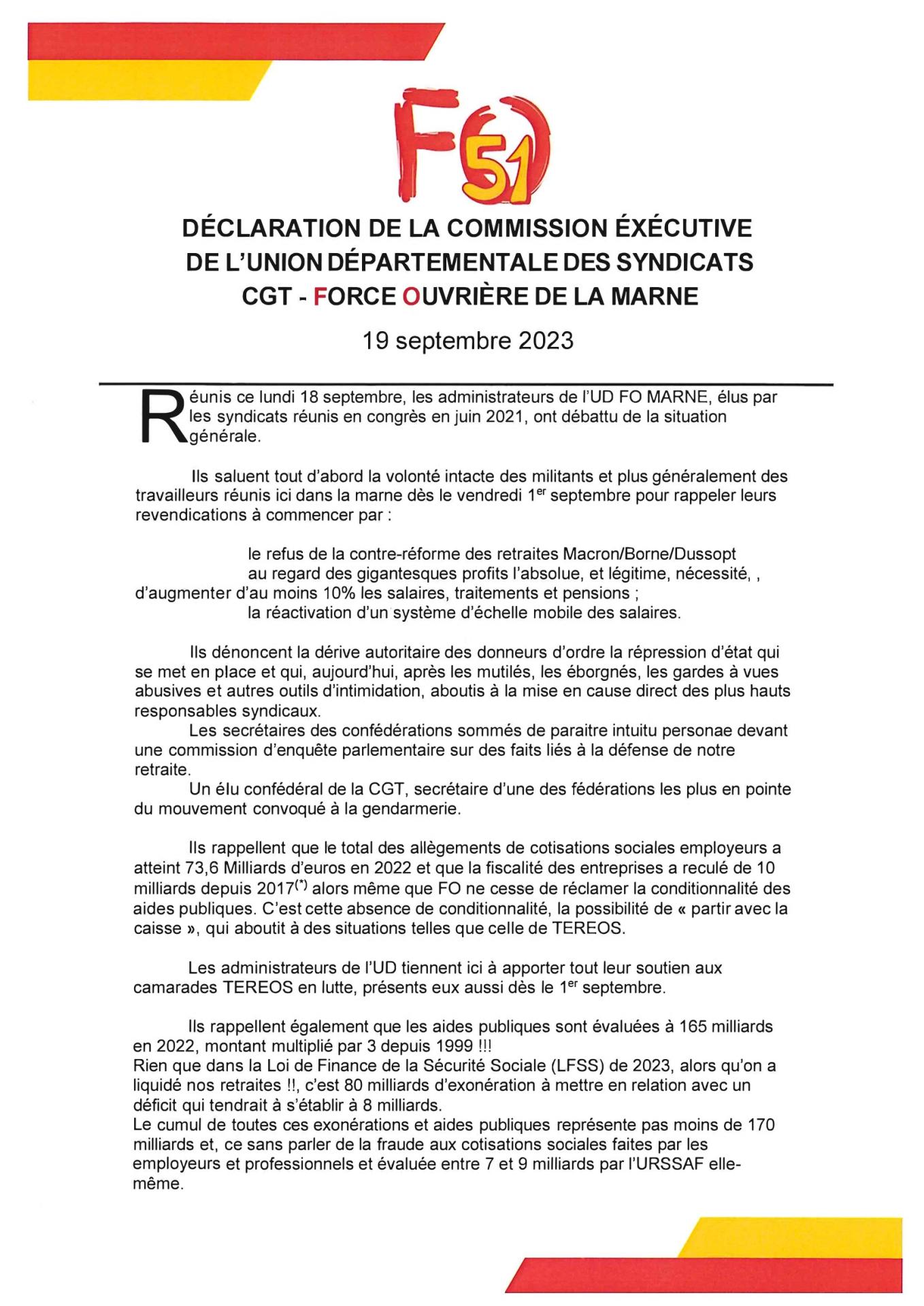 DÉCLARATION DE LA CE DE L’UDFO51